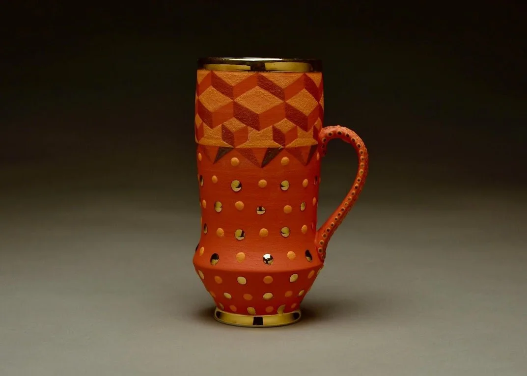 I am driven to make refined, elegant pottery that sparks happiness when used or seen. Handmade vessels are a manifestation of my own dreams and personality, and hold meaning that goes beyond pure appearance. The tactile way clay moves in my hands and the puzzling of patterns and colors on the ceramic surface is a continuous game with limitless options. Like people, vessels can be metaphorically described by their body parts; they can have a foot, belly, neck, shoulder, mouth, and lip. These human characteristics make pots very personal, and link the work with their owner or maker, especially when the pot is being used. When lips connect with the rim of a cup, or hands fit perfectly into a handle, there is an intimate connection between the individual and the art. Ceramic art brings beauty to our homes and reflects how we live and what we value. Pottery is an art form that rebels against single-use paper plates and mass-produced, uninspired tableware. It is both sustainable and unique. I believe that my instinctive drive to create beautiful, joyful, functional objects recalls age-old and familiar daily food rituals that satisfy body and soul.